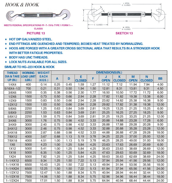 TURNBUCKLES U.S HOOK&HOOK