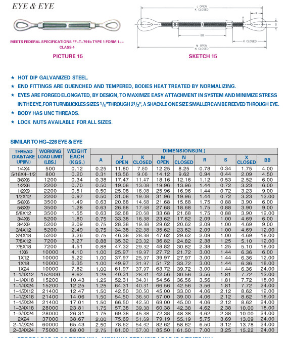 TURNBUCKLES TO U.S EYE&EYE