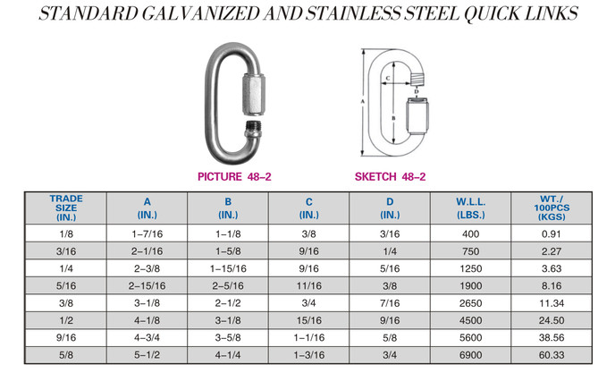 STANDARD GALVANIZED AND STAINLESS STEEL QUICK LINKS